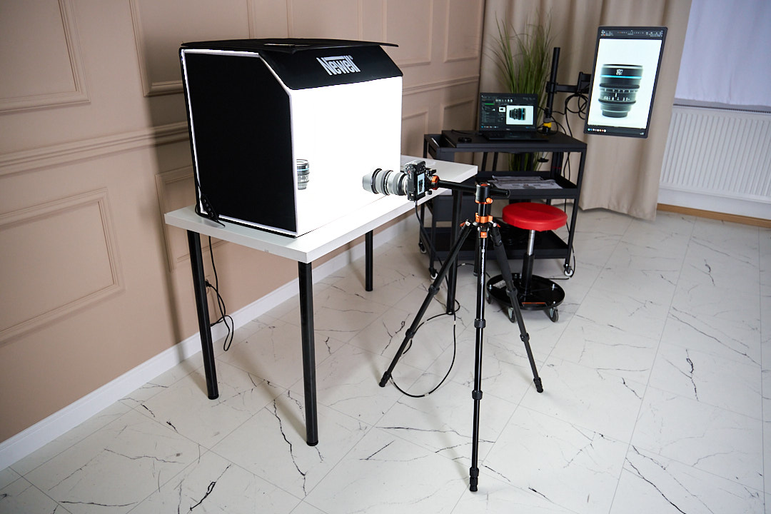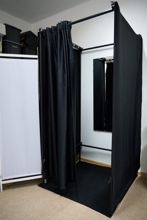 Do ujęć packshotowych czeka namiot bezcieniowy 60×50×40 cm. Jeśli potrzebujesz większej sceny – wykorzystasz cykloramę.